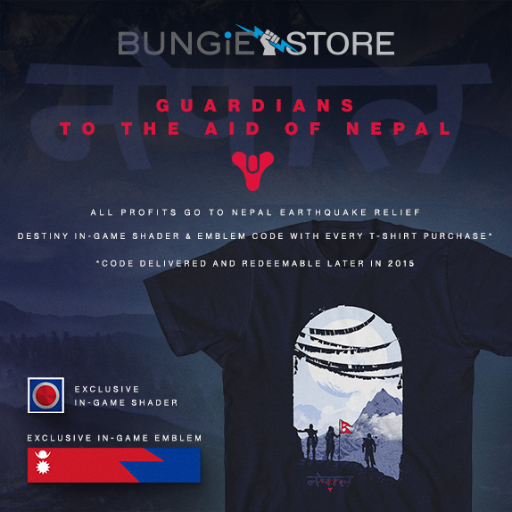 - The Nepal shirt. This was a limited time offer where proceeds would go to relief efforts of April’s devastating Nepal earthquake. What was interesting about this item was that not only did you get the t-shirt itself but also digital in-game items as well. Specifically, a shader and an emblem of similar colours to the shirt.